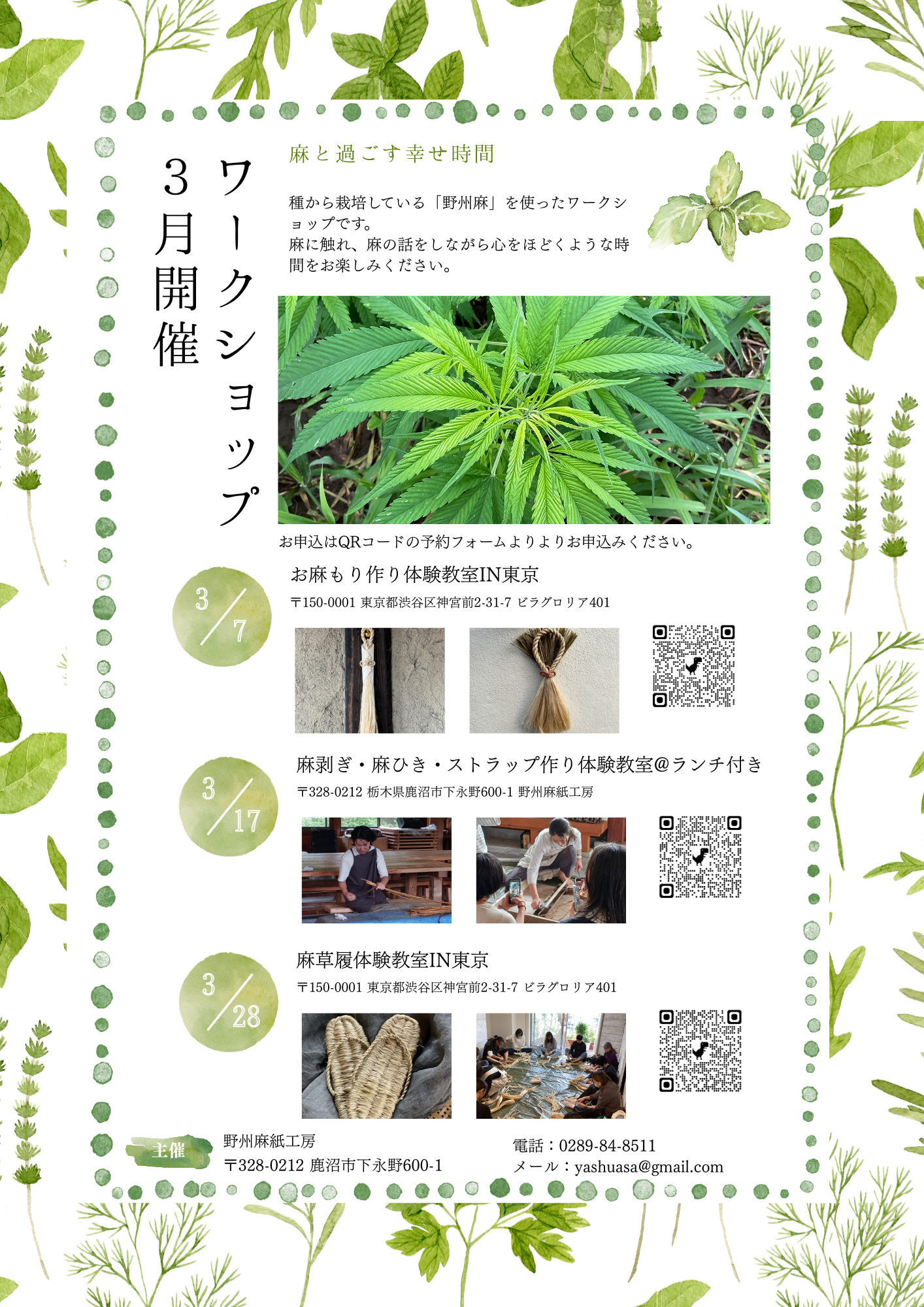 麻に触れ、はるか昔から日本人と時の流れを共にしてきた植物である麻の魅力を、知っていただけましたら嬉しいです(^^)